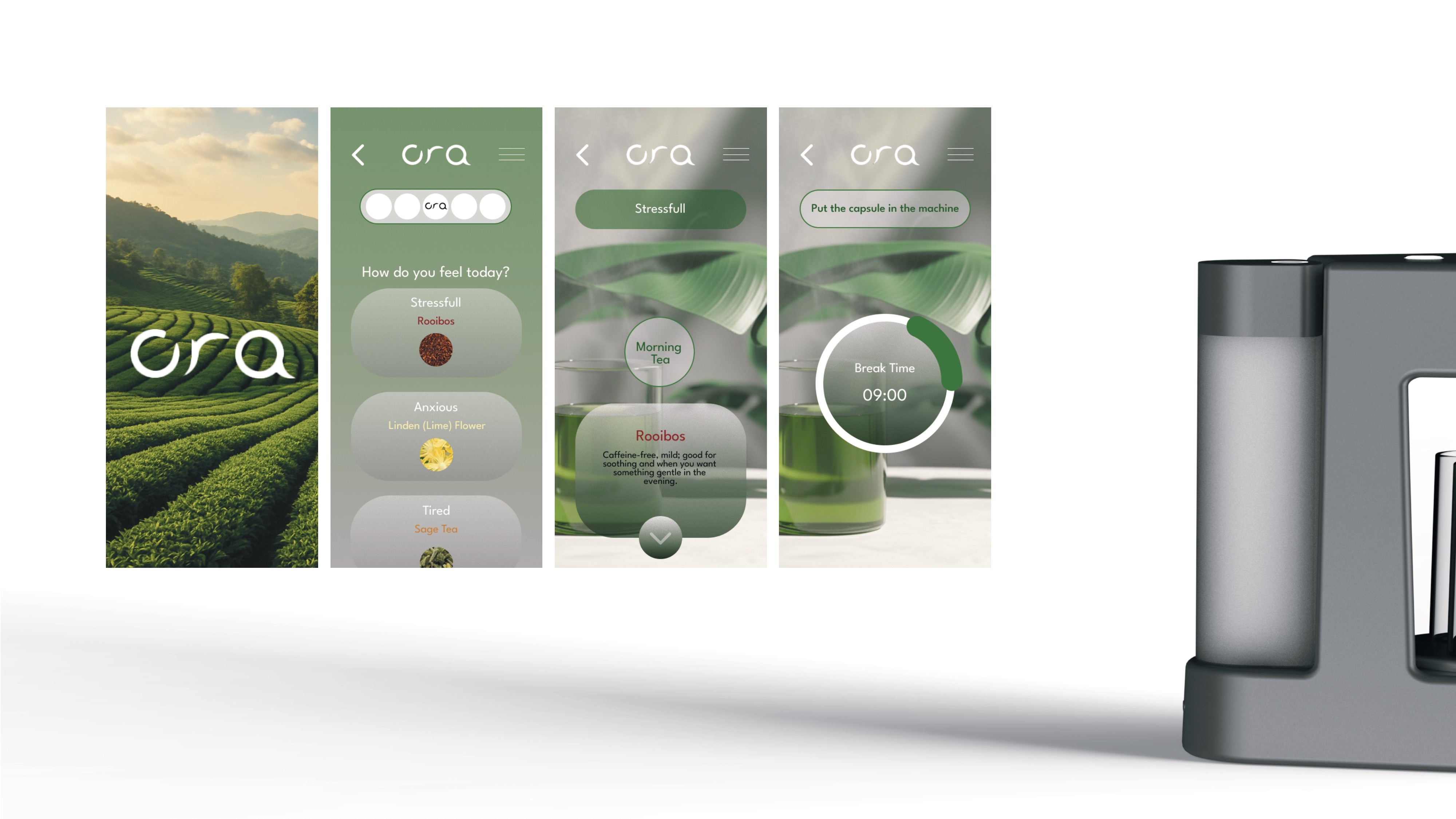 Ora introduces a physical and digital ecosystem where herbal infusions align with morning focus, midday clarity, and evening wind-down.